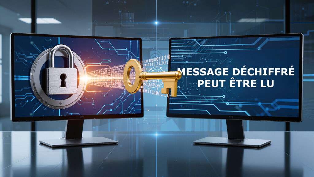 Prenons un exemple simple. Si vous envoyez un message contenant des informations sensibles sans chiffrement, quelqu’un qui intercepte ce message peut le lire immédiatement. En revanche, si le message est chiffré, la personne qui l’intercepte ne verra qu’un ensemble de données incompréhensibles. Seule la personne disposant de la clé de déchiffrement pourra retrouver le message original.